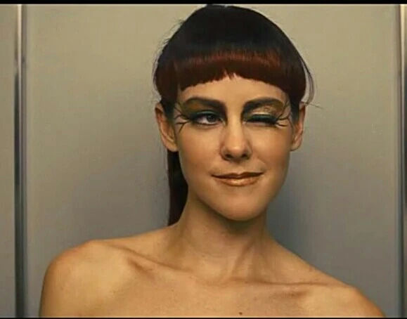 Дожидаясь лифта, она расстегивает остальную часть костюма, роняет на пол и с отвращением на лице отправляет пинком подальше. Кроме тапочек травяного зеленого цвета на ней теперь ни единой нитки.
