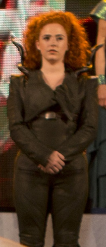 На интервью она надела чёрный кожаный костюм с рогами, прикрепленными к плечам.