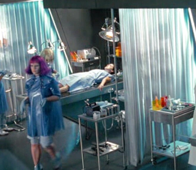 сморщены от напряжения. По трубкам текут какие-то жидкости, на стене