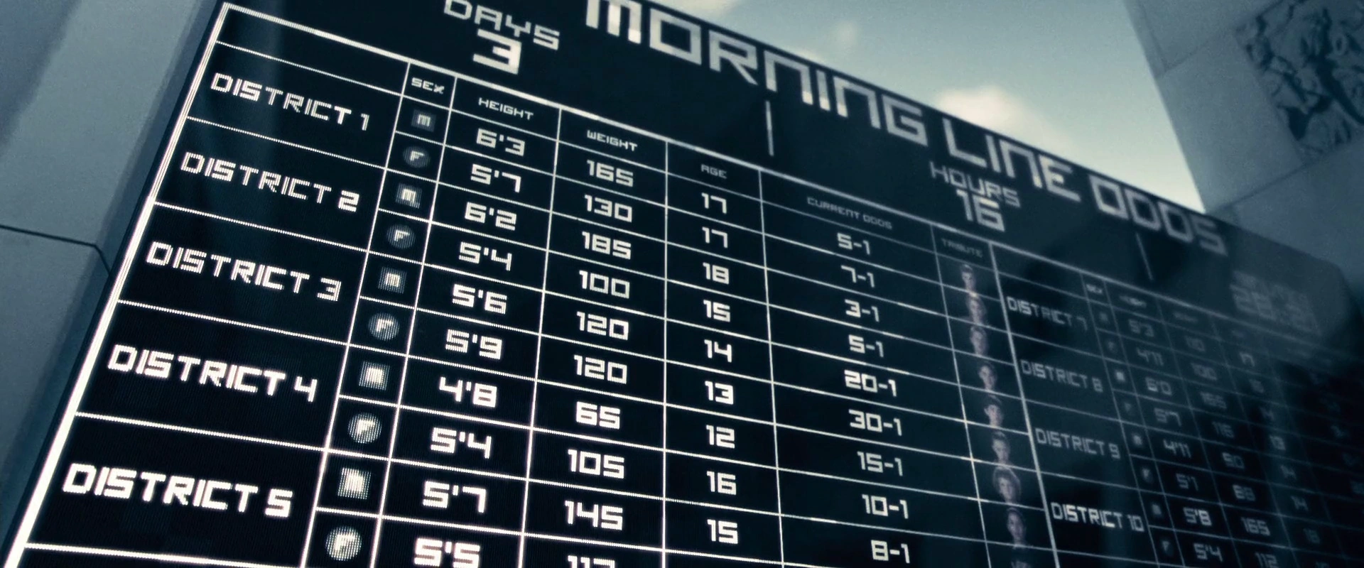 - In the film, her betting odds of winning were 5-1, the same as Marvel, the District 7 boy, and the District 8 girl.
