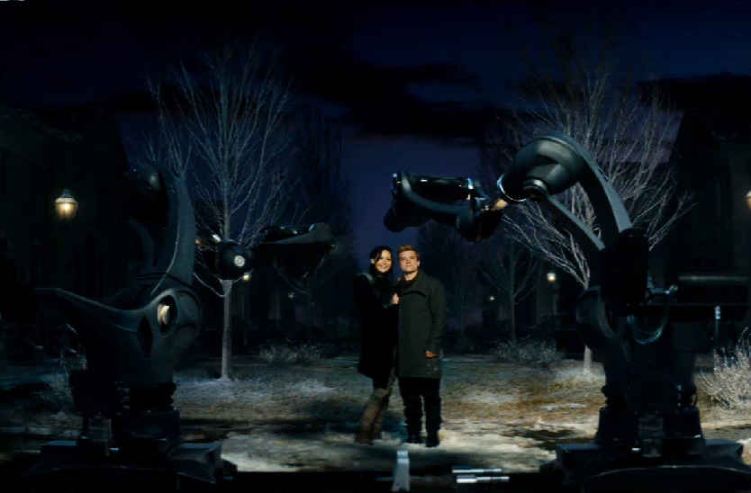 Katniss and Peeta on the roof at the Training Center.