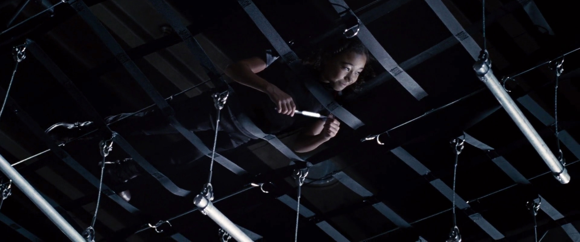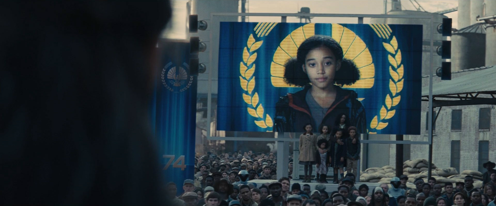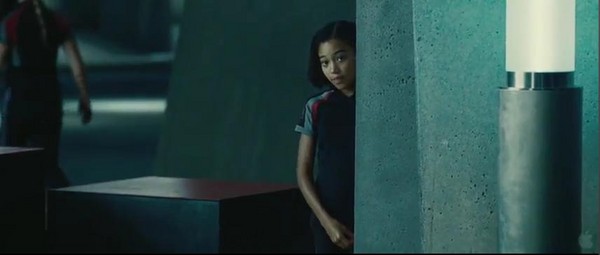 Rue watches Katniss and Peeta in the Training Center.