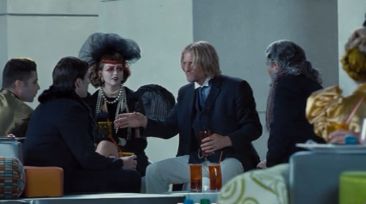 Haymitch talking to Capitol sponsors.